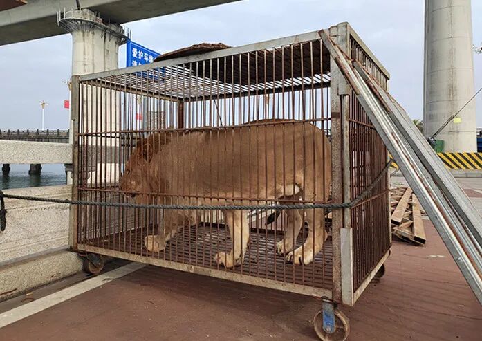 南国早报全媒体记者了解到,狮子是一家刚刚抵达防城港的马戏团临时存放在该处。