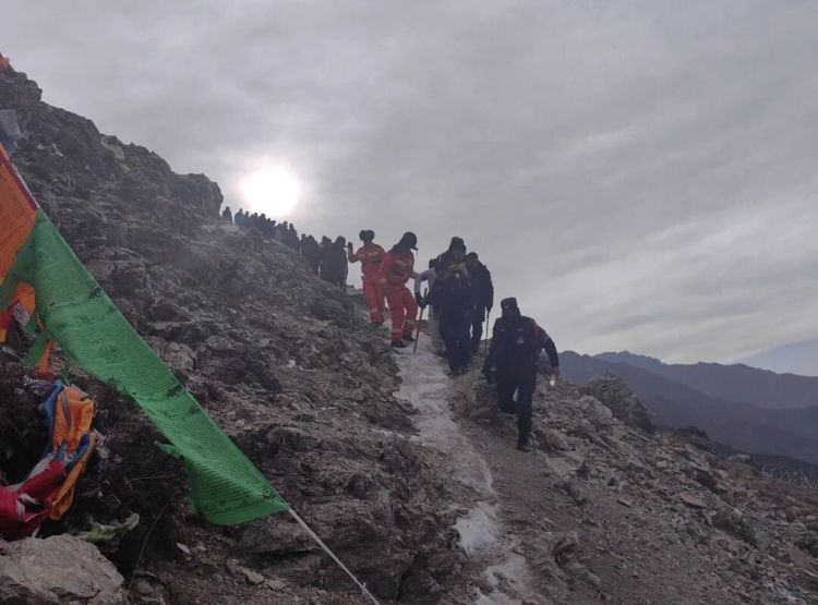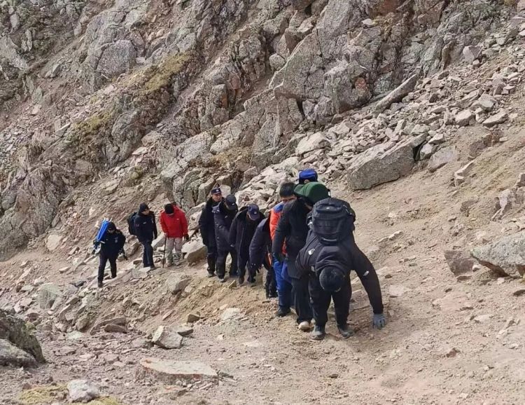 从黑夜到白昼,救援队不敢有丝毫松懈,翻越崇山峻岭、踏过乱石沟壑、克服高寒缺氧等重重困难,在连续找寻15小时后,一组队员前往五山池腹地进行搜寻,因体力不支加高寒缺氧,救援队决定临时休整。