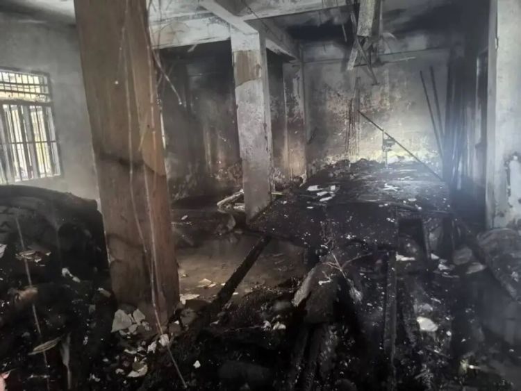 门能有效隔绝高温与浓烟, 将首层与该住户尚未被火势蔓延的居住区域进行分隔,为救援争取了宝贵时间。现场可见,建筑首层烧毁严重,门外的楼道被烧得漆黑、墙皮和墙面瓷砖大量脱落,住户门内区域却完好无损,印证了关紧门的重要性。